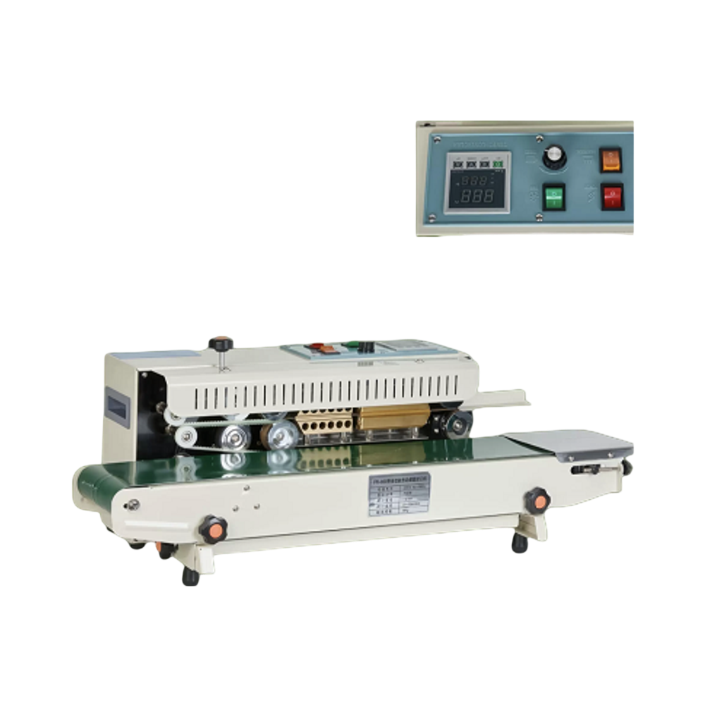เครื่องซีลปากถุงสายพานแนวนอน รุ่น FR-900 ซีลได้ต่อเนื่อง รอยซีลขนาด 14 mm. น้ำหนักไม่เกิน 6 kg. เครื่องซีลถุงพลาสติกด้วยความร้อนไฟฟ้าอัตโนมัติใช้งานง่าย